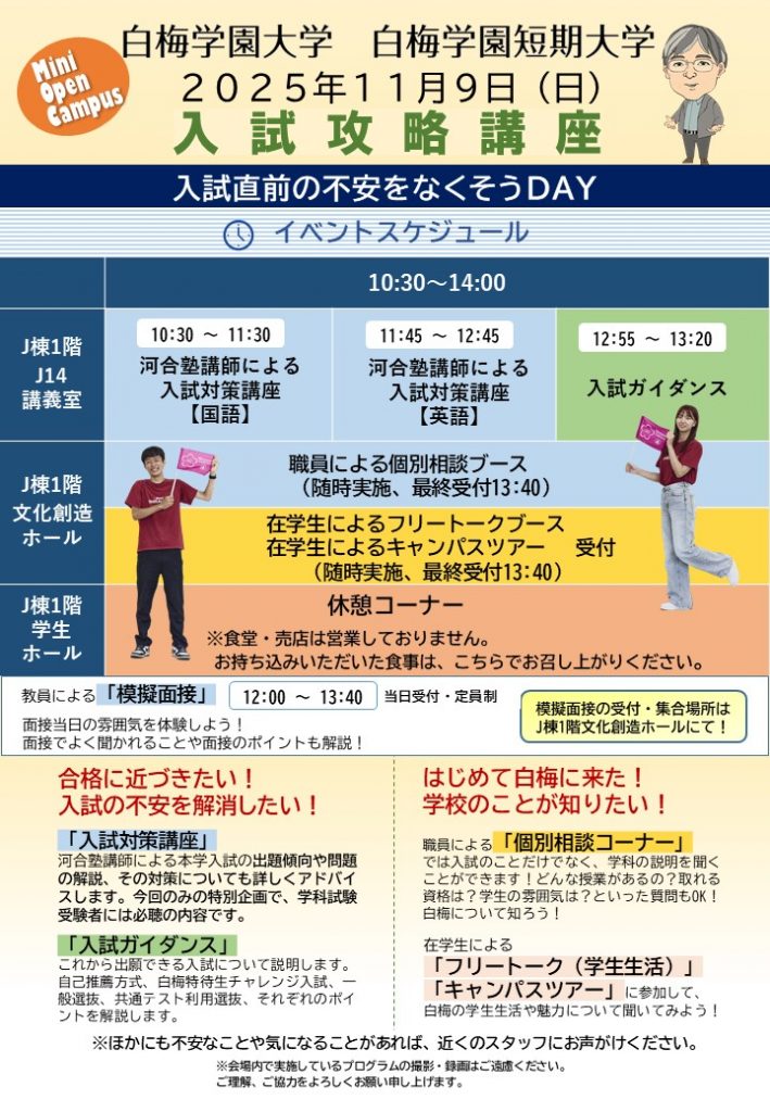 ・河合塾講師による国語、英語の入試対策講座 ・模擬面接 ・職員による個別相談